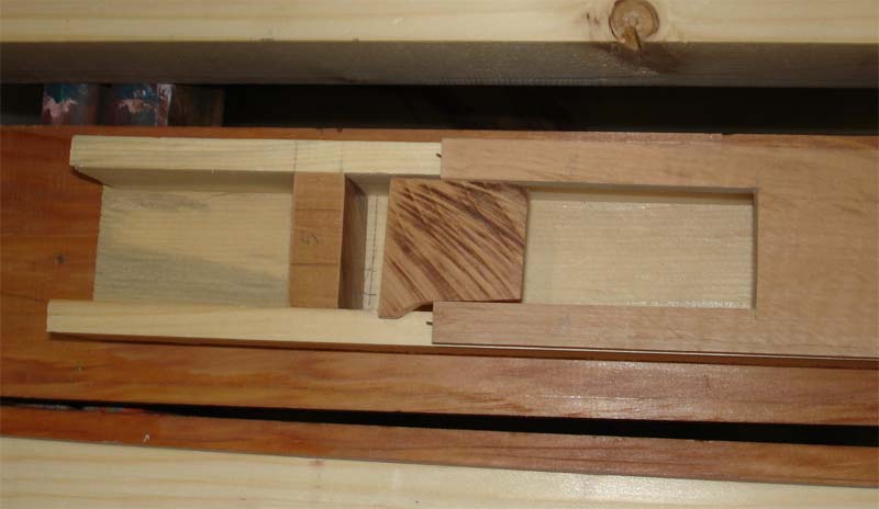 Le bois utilisé est du pin pour le fond et les côtés, du poirier pour la façade, le talon et les biseaux